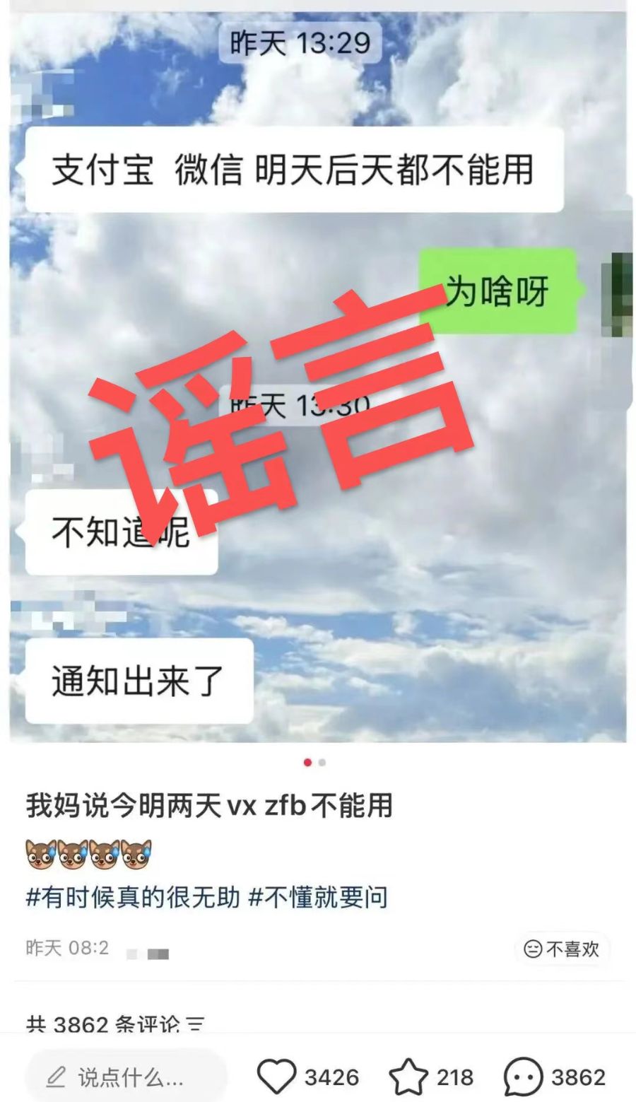 21财经《辟谣财知道》注意到,近日,在一些社交平台上,"12月30日、31日支付宝、微信支付不能使用"的消息流传,引发不少民众对日常支付的担忧。 昨天 13:29 支付宝 微信 明天后天都不能用 为啥呀 天 1 - 50 不知道 』 通知出来了 我妈说今明两天 vx zfb 不能用 ad as a see #有时候真的很无助 #不懂就要问 昨天 08:2 ■■ 空不喜欢 共 3862 条评论 三 2 说点什么 ... ) 3426 7 218 (.. ) 3862 对此,12月31日上午,21财经《辟谣财知道》致电微信支付客服,接线工作人员表示,目前已接到通知,受相关单位年终结算工作安排影响,个人所得税 APP将在2025年12月30日21点至12月31日24点期间,暂停第三方支付渠道的税费缴纳业务,相关功能将于2026年1月1日恢复正常。 但该工作人员特别强调,此次暂停仅针对个税APP的税费缴纳场景,微信支付的日常支付功能不受任何影响,包括水电燃气费用缴纳、红包转账、收付款等 功能,均能正常操作,无需担心使用障碍。 21财经《辟谣财知道》随后查询个人所得税APP发现,APP已对相关缴款功能暂停事宜进行了明确 ...