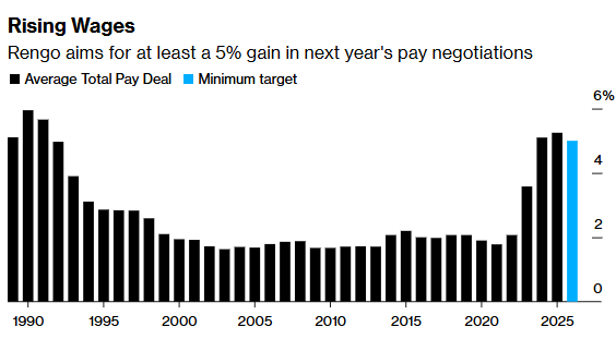 攸关日本央行加息路径!明年“春斗”前哨:日本最大工会拟寻求5%加薪
