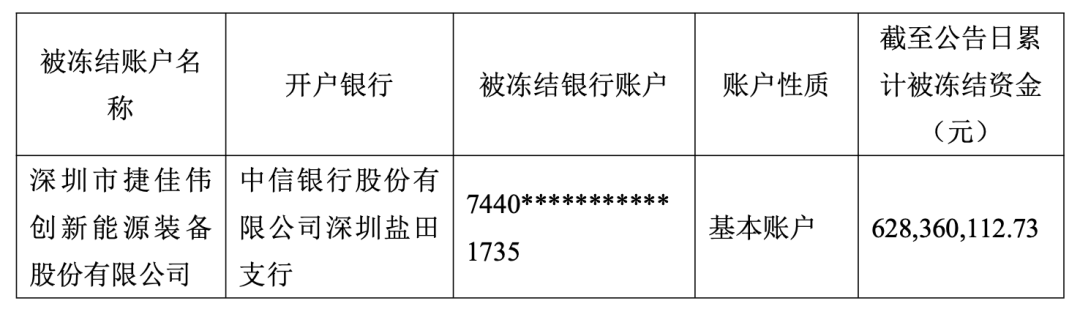 Core Viewpoint - Jiejia Weichuang (300724) has had a portion of its bank account funds frozen, totaling 628 million yuan, primarily due to a payment dispute with Xuzhou Guangneng [1][3]. Group 1: Financial Impact - The frozen amount of 628 million yuan accounts for 5.67% of the company's latest audited net assets and 7.30% of its cash and trading financial assets as of September 30, 2025 [1]. - The company asserts that the frozen funds only represent a portion of the account, and other funds remain accessible, ensuring normal cash flow and operations are not significantly affected [1]. Group 2: Legal Disputes - The freezing of funds is linked to multiple litigation matters, including disputes with Shanghai Yichu Electric Wire & Cable Co., Ltd. and Shanghai Xuan Zhi Electric Equipment Co., Ltd., both of which have reached settlements [2]. - The primary issue involves a contract dispute with Xuzhou Guangneng, where the court has frozen 316 million yuan of the company's funds, contributing to the total frozen amount of 628 million yuan [2][4]. - The company has initiated legal proceedings against Xuzhou Guangneng and its shareholder, Wuxi Huadong Guangneng Technology Co., Ltd., due to unpaid equipment fees [4][5]. Group 3: Company Performance - For the first three quarters of 2025, the company reported total revenue of 13.106 billion yuan, a year-on-year increase of 6.17%, and a net profit attributable to shareholders of 2.688 billion yuan, up 32.90% [8]. - The company is recognized as a leading national high-tech enterprise in solar cell equipment research, production, and sales, with a focus on expanding into semiconductor and lithium battery equipment sectors [8].