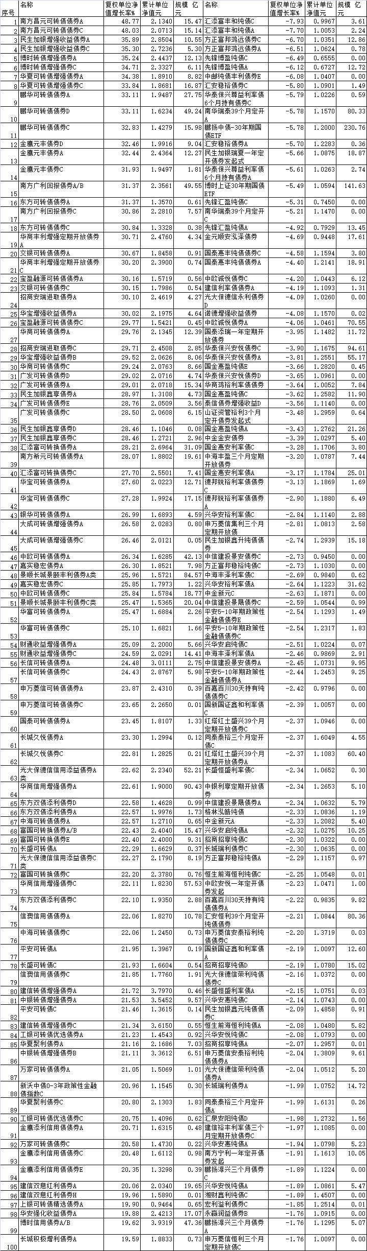 2025年九成债券基金上涨 南方昌元可转债债券涨48%
