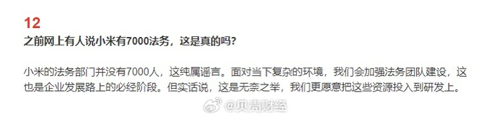 Group 1 - The core viewpoint of the article is that the company is strengthening its legal team as a necessary response to a complex environment, despite preferring to allocate resources to research and development [1] Group 2 - The company officially refuted rumors about having a "7000-person legal team" while acknowledging the need to enhance its legal team [1] - The company described the decision to strengthen the legal team as a "forced move" rather than a preferred strategy [1]