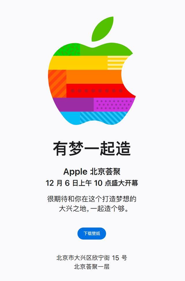 苹果在北京大兴开设新零售店,将于12月6日开业