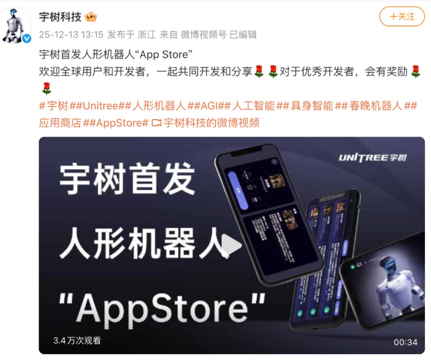 据上海证券报,目前公测版已经释出了搞笑动作、扭扭舞、李小龙三大预设。以"李小龙"为例,官方介绍称,该程序是专 为发烧级机器人玩家打造的动作控制App。通过独家的动力学算法与动作捕捉数据,宇树科技将李小龙(Bruce Lee)经典 的截拳道(Jeet Kune Do)动作库无缝移植到用户的机器人硬件上。 除了宇树科技,智元机器人也于10月推出0代码、0门槛的机器人内容创作平台——"灵创"平台。无需编程基础、无需专业 设备,只需上传一段人类动作视频,用户即可通过"灵创"平台实现从真人表演到机器人精准复刻的端到端转化。 备受关注的宇树科技又有新动态。 12月13日,宇树科技宣布首发人形机器人"App Store"(应用商店),用户可以将训练好的舞蹈、武术、干活等模型一键上 传分享,也可以下载其他开发者开发的动作部署到机器人。 据了解,平台中也包含由真实机器人采集的数据,用户可以上传自己的数据或下载他人的数据集,用于算法训练和优化。 这意味着,无论是零经验的爱好者还是独立开发展、大型团队,均可通过"App Store"节省大量重复开发的时间。 今年6月,宇树科技创始人王兴兴透露公司年营收已超10亿元,这意味着他们已经 ...