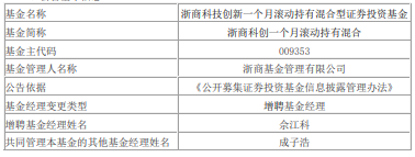 浙商基金旗下2只基金增聘佘江科 1只累计亏3成