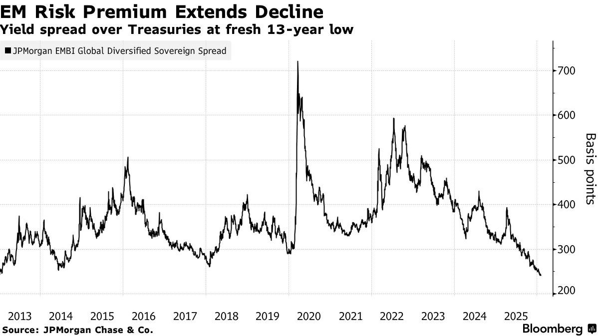Core Viewpoint - Carmignac Gestion SA warns traders to think twice before selling emerging market bonds, as funds are expected to continue flowing into this asset class due to strong structural advantages in emerging economies [1] Group 1: Structural Advantages of Emerging Markets - Emerging economies are showing three structural advantages: sustained economic growth outpacing developed economies, stronger policy accountability from some national leaders, and a cautious monetary policy framework with manageable overall debt levels [1] - The market's rising expectations for U.S. interest rate cuts are driving investors to seek higher-yielding opportunities in other markets, making funds tracking emerging market assets one of the biggest beneficiaries [1] Group 2: Performance and Future Outlook - Emerging market bonds had a return of 12.2% last year, the best performance since 2012, although it may be challenging to replicate this success this year [1] - Despite the narrowing yield spread compared to U.S. Treasuries, emerging market bonds still have potential for growth, as the current yield premium is only 240 basis points, the lowest since 2013 [1] Group 3: Investment Opportunities - Many emerging markets still offer attractive interest rate conditions for arbitrage traders, particularly in countries like Brazil, Colombia, and Turkey [4] - The overall rise in commodity prices is expected to support demand for emerging market bonds, with many emerging markets being key producers of metals involved in the AI and green revolutions [4] - Specific investments in Hungary's local currency bonds and Romania's public finance improvements are highlighted as promising opportunities [5] Group 4: Broader Market Sentiment - Emerging markets such as Ivory Coast, Benin, Egypt, and Uzbekistan are noted for their solid investment fundamentals, with positive market reception encouraging optimism across other sectors [5]