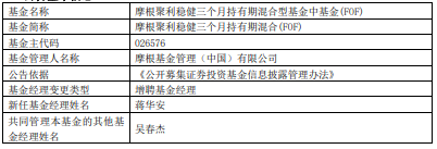 摩根聚利稳健三个月持有期混合FOF增聘蒋华安