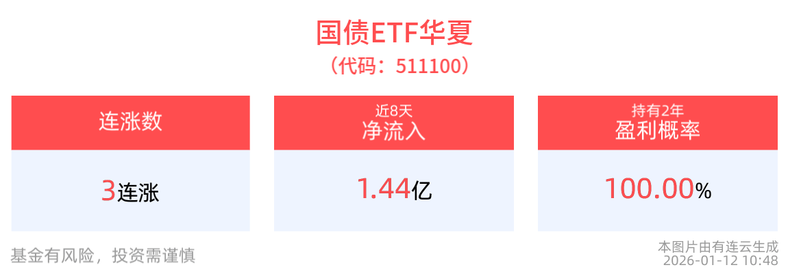 国债ETF华夏(511100)冲击3连涨,近8个交易日内合计“吸金”1.44亿元
