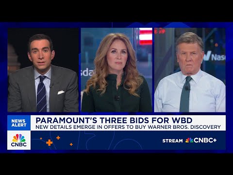 I want to bring you uh some new details right now about Paramount's offer to buy Warner Brothers Discovery. Paramount made three bids uh to buy the company over the past couple of weeks here. It first offered $19, then raised that to $22.The latest offer sent on October 13th was for $23.50% a share in cash and stock. Uh details of these offers revealed in a letter uh to Paramount from Paramount CEO David Ellison that was sent to the board of Warner Brothers Discovery. Ellison writes the following in that le ...