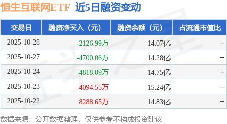 恒生互联网ETF:10月28日融券净卖出24.37万股,连续3日累计净卖出454.76万股