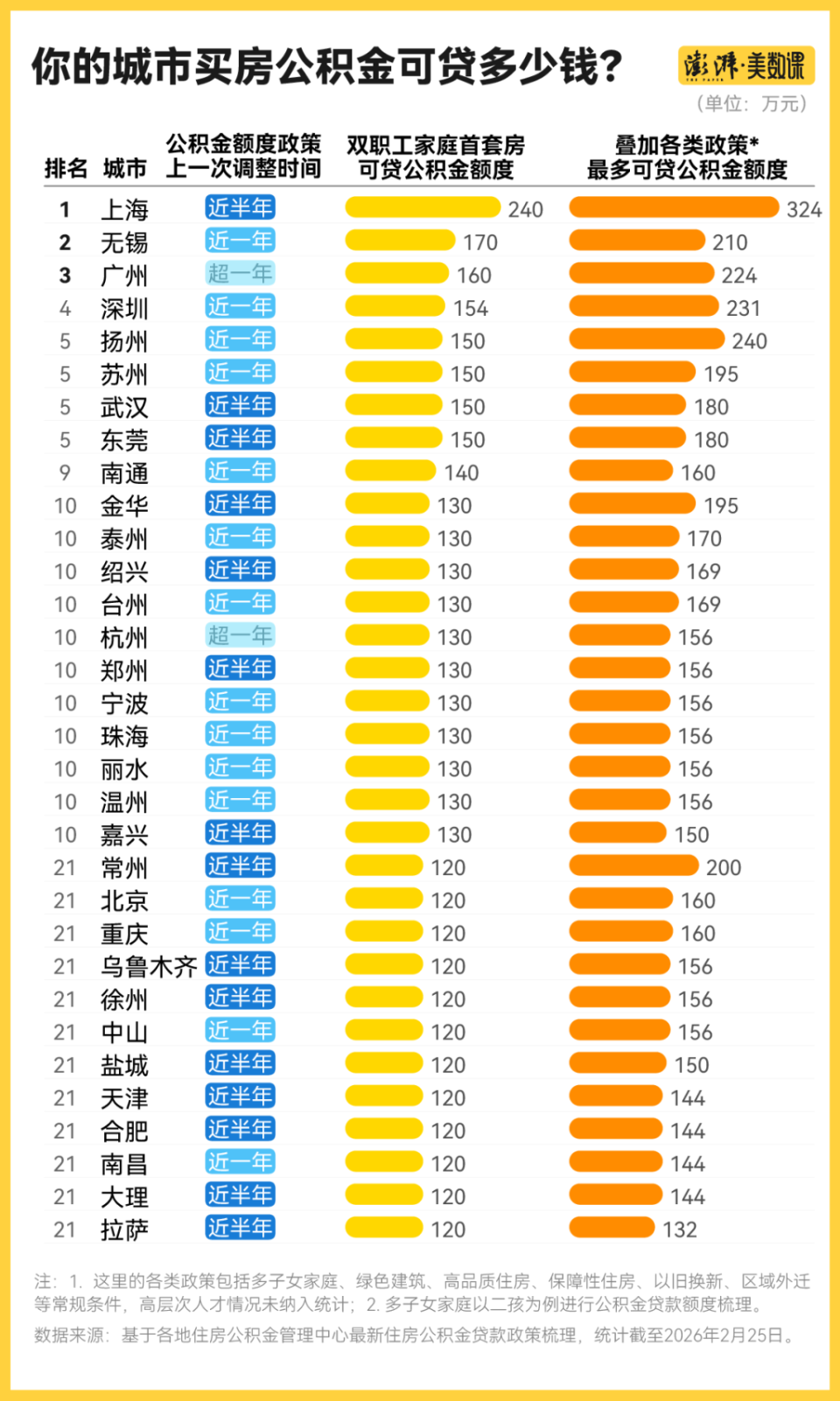 上海公积金贷款家庭额度升至最高324万,各地能贷多少?
