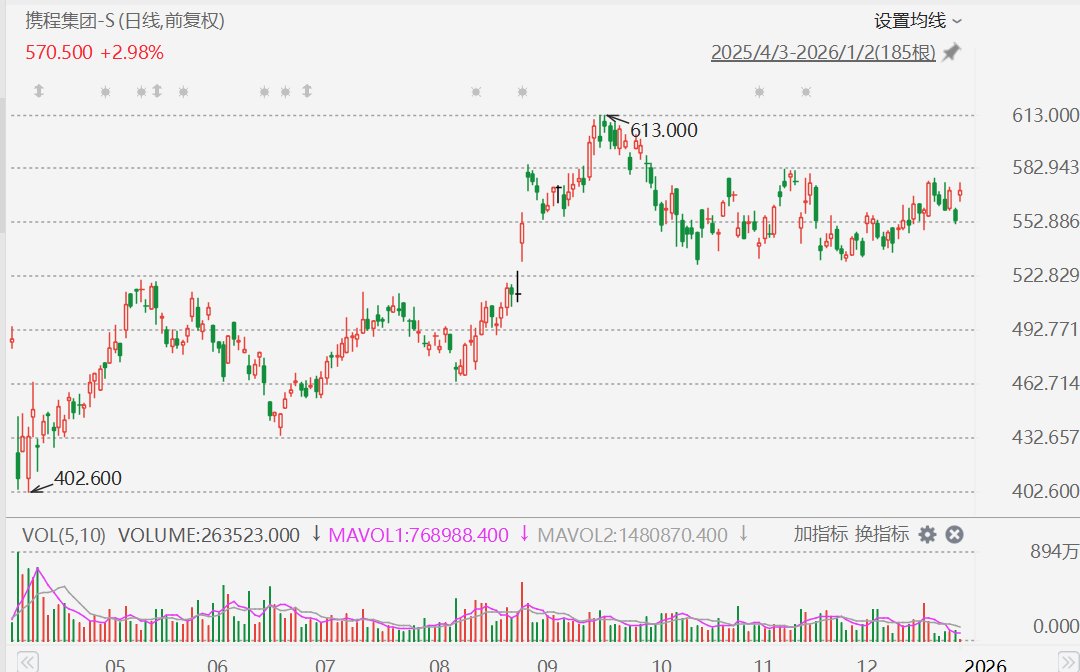 港股异动丨携程涨近4%,元旦跨区域出行人次同比增21%
