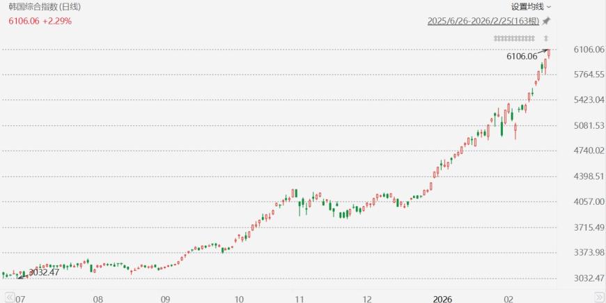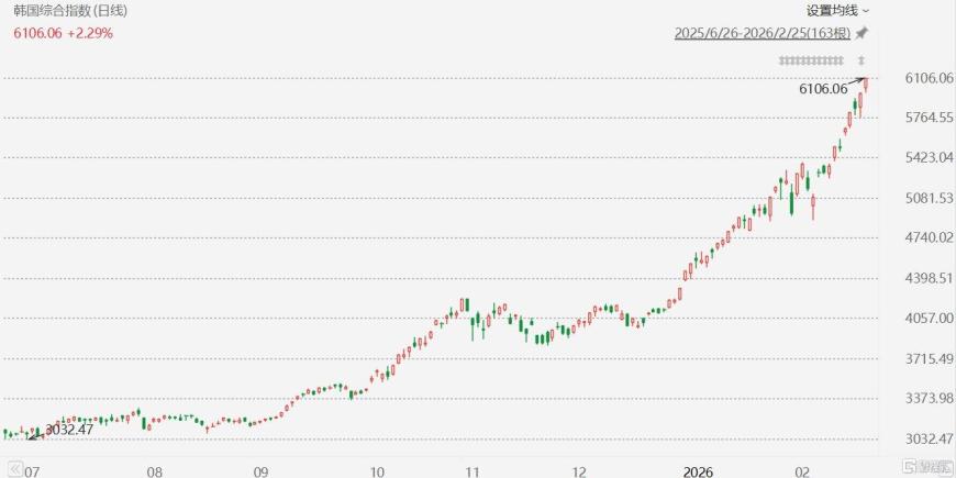 首次升破6000点、年内累涨45%,韩国股市牛冠全球!
