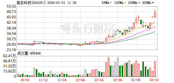 据天眼查APP显示,中国航发航空科技股份有限公司成立于1999年12月28日,注册资本33012.9367万人 民币。(数据宝) (文章来源:证券时报网) 数据宝统计,截至11:14,航发科技成交额21.32亿元,创上市以来新高。最新股价上涨5.11%,换手率 13.34%。上一交易日该股全天成交额为7.47亿元。 ...