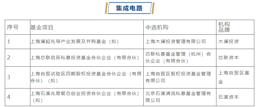 上述4只基金共计提供上海储备投资项目41项,拟投资金额合计超过30亿元。拟投资项目覆盖存储、AI 芯片、核心零部件和材料、高端装备、先进封装等赛道,为上海集成电路产业补链、强链、稳链。此 外,4只基金共计提供20个上海招引项目,其中包括6例企业总部拟迁址。拟迁址项目覆盖高端设备、核 心零部件、AI芯片、先进封装等领域,进一步巩固上海集成电路产业龙头地位。 26日,记者从上海国投获悉,上海三大先导产业母基金发布第三批子基金遴选结果,共有17只子基金入 选,其中集成电路4只、生物医药7只、人工智能6只。拟投资金额共47.1亿元,基金总规模228.9亿元, 放大倍数4.86倍。其基金管理人为上海国投先导公司,系上海国投公司全资子公司。自2024年7月设立 起,截至目前,上海三大先导产业母基金累计投决金额约410亿元,以约5倍的杠杆效应,撬动近2000亿 元社会资本。 据悉,第三批子基金遴选于2025年7月28日向社会公开发布遴选公告,截至申报结束,共有53家机构踊 跃申报。经过专家评审、立项尽调、现场答辩、正式投决等流程,筛选出符合"上海方案"的优质子基 金。 上海国投相关负责人表示,本次公示的第三批子基金遴选充分 ...