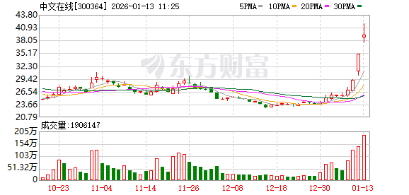 (文章来源:证券时报网) 数据宝统计,截至10:42,中文在线成交额69.55亿元,创2024年10月24日以来新高。最新股价上涨 14.61%,换手率26.63%。上一交易日该股全天成交额为46.34亿元。 据天眼查APP显示,中文在线集团股份有限公司成立于2000年12月19日,注册资本72850.0118万人民 币。(数据宝) ...