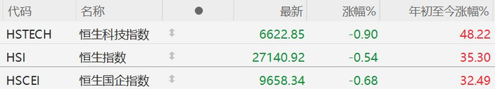Group 1 - The Hong Kong stock market experienced a pullback after three consecutive days of gains, with the Hang Seng Index closing down by 0.54% [1] - The Hang Seng Technology Index fell by 0.9%, while the Hang Seng China Enterprises Index decreased by 0.68% [1] - Trading volume significantly shrank to HKD 134.78 billion [1] Group 2 - Among the constituents of the Hang Seng Index, notable declines were observed in CITIC Limited, China Resources Mixc Lifestyle, Longfor Group, Sands China, and WH Group, all dropping over 2% [1] - In the Hang Seng Technology Index, BYD Company, Kuaishou, and others saw declines exceeding 3%, while XPeng, Li Auto, and NIO fell over 2% [1] - Conversely, Alibaba and SMIC reached new highs despite the overall market downturn [1]