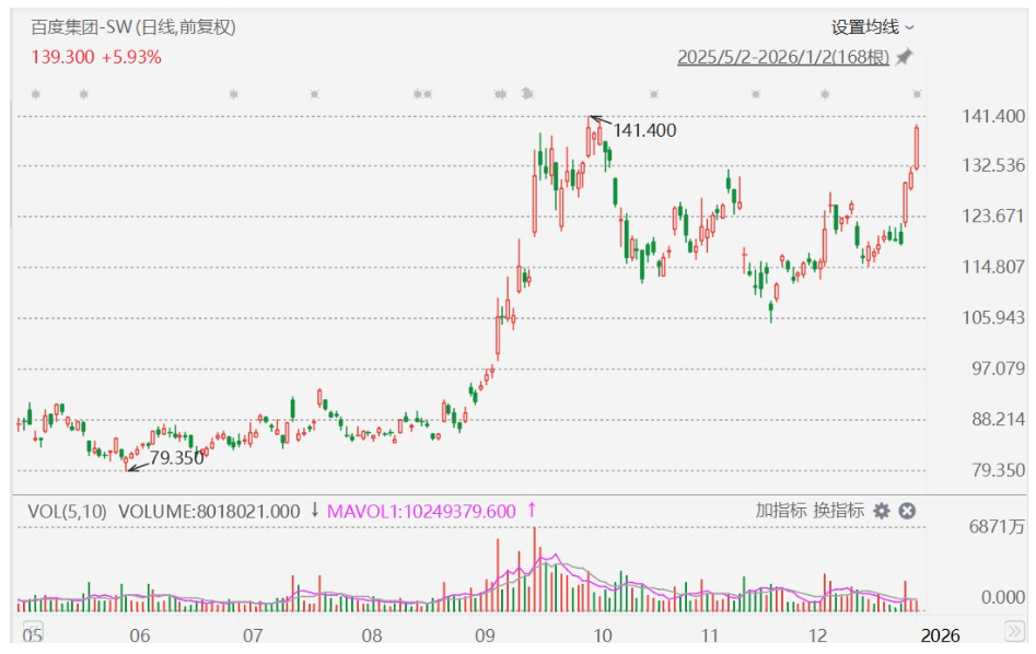 百度狂飙。 今日(1月2日),百度集团港股股价大爆发,盘中暴涨超9%。消息面上,百度发布公告称,子公司昆仑芯已向香港联交所提交上市申请表格(A1表格),以申请批 准昆仑芯股份于香港联交所主板上市及买卖。有机构分析称,参考同类公司估值,百度所持昆仑芯59%股权的价值区间为30亿至110亿美元。 当前,人工智能(AI)芯片领域的企业正掀起一波上市潮。"国产GPU四小龙"燧原科技IPO也有最新进展,据证监会官网,燧原科技已完成IPO辅导工作,标志着其 上市进程进入下一阶段。 百度暴涨 1月2日,港股开盘后,百度集团股价大幅飙升,盘中暴涨超9%,截至发稿,涨幅仍达9.35%,报143.8港元/股。 消息面上,百度集团发布公告称,其子公司昆仑芯已于1月1日通过其联席保荐人以保密形式,向香港联交所提交上市申请表格,申请在主板上市及买卖。 公告表示,香港联交所已确认百度可进行建议分拆。昆仑芯上市完成后,仍将是百度的附属公司。具体细节尚未确定,包括全球发售的规模与结构、百度持股比例的 减少幅度等。 在公告中,百度阐述了分拆昆仑芯并独立上市的三大理由: 一是可以更全面地反映昆仑芯集团基于自身优势的价值,并提升其营运及财务透明度 ...