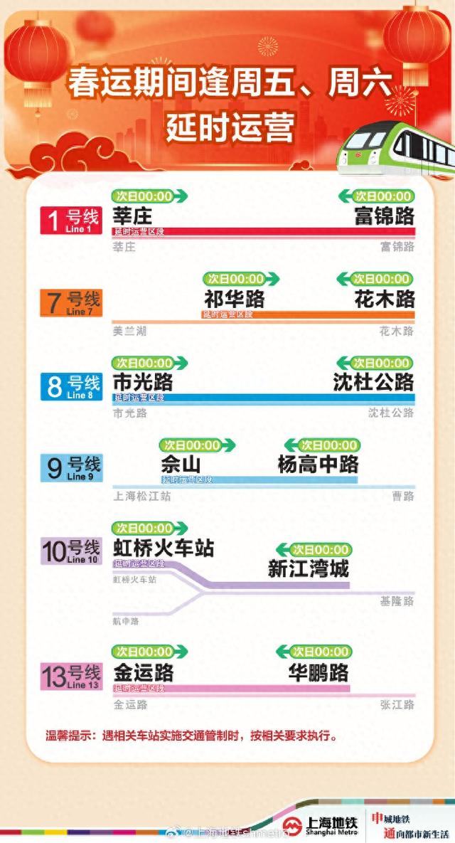 返程高峰将至,上海多条地铁线开加班车、虹桥枢纽设夜间免费摆渡巴士