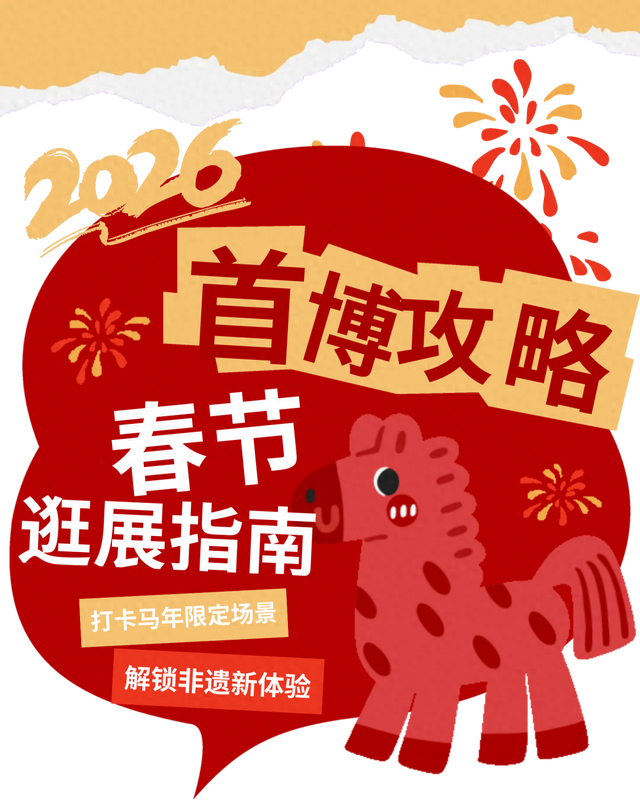 新春佳节 年味与文化碰撞才更有滋味 2026丙午马年春节 首都博物馆以文化为媒 打造了一场 集沉浸式打卡、精品展览与非遗互动 于一体的新春盛宴 无论是想在限定场景中定格年味大片 还是想在文物光影中探寻年俗根源 这份攻略都将为您解锁 首博春节的正确打开方式 让新春之行既有满满的仪式感 又添深厚的文化底蕴 首博礼仪大厅新春全新升级,推出"春风迎福·繁花贺岁"主题沉浸式体验场景,融入生肖文化与传统吉 祥符号。萌趣卡通马装置搭配祥云点缀分布于关键位置,作为"吉祥使者"成为年味打卡C位;地面手绘 玫瑰、月季等吉祥花卉铺就"福路",以"踩福""走花路"传递新春顺遂、繁花似锦的美好祝福;古典景窗 搭配红灯笼与雅致花卉打造中式拍照区,单人或阖家合影皆能定格古风韵味。整个空间以红为主色、黄 为点缀,搭配花卉自然色彩,氛围感拉满,随手一拍都是年味大片。 . r IDING 125 42 122 0 and the r cal t 2006 00 會在 120 9 FLT 4 f 1 上 i THE COLLEC 811 y STANS CONSULERS 街德景 88.99 a t 子康 . 24 2055 TOP 8 7 20 ...