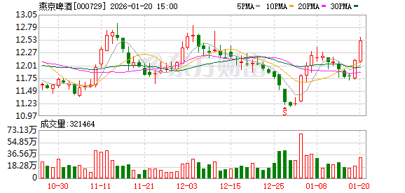 资金面上,该股今日主力资金净流入4650.79万元,近5日资金净流入3678.98万元。最新(1月19日)两 融余额3.03亿元,其中,融资余额3.01亿元,环比前一交易日下降2.63%,近5日融资余额累计增长 1.29%。 从机构评级来看,近一个月该股被2家机构评级买入。预计目标价最高的是国泰海通证券,1月4日国泰 海通证券发布的研报给予公司目标价位17.75元。(数据宝) 燕京啤酒(000729)1月20日发布2025年业绩预增公告,预计实现净利润为15.84亿元~17.42亿元,净利 润同比增长50.00%~65.00%。 证券时报·数据宝统计显示,燕京啤酒今日收于12.51元,上涨3.30%,日换手率为1.28%,成交额为3.97 亿元,近5日上涨3.56%。通过对2025年业绩预增50%以上的个股走势进行统计发现,预告发布后当日股 价上涨的占比63.33%,股价发布当日股价涨停的有3家。预告发布后5日股价上涨的占比71.11%。 (文章来源:证券时报网) ...