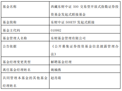 东财上证50A/C成立于2019年12月03日,截至2026年02月24日,其今年来收益率为0.81%、0.78%, 成立来收益率为41.15%、38.98%,累计净值为1.4115元、1.3898元。 东财创业板ETF发起式联接A/C成立于2020年03月18日,截至2026年02月24日,其今年来收益率为 2.91%、2.87%,成立来收益率为97.92%、95.01%,累计净值为1.9792元、1.9501元。 中国经济网北京2月25日讯 今日,东财基金公告,姚楠燕离任东财中证500ETF发起式联接、东财 中证证券30ETF发起式联接、东财上证50ETF发起式联接、东财创业板ETF发起式联接、东财中证芯片 ETF发起式联接。 姚楠燕曾任中欧国际工商学院金融学/会计学研究助理、西藏东财基金管理有限公司筹备组成员, 现任西藏东财基金管理有限公司基金经理兼基金经理助理。 东财中证500A/C成立于2021年01月20日,截至2026年02月24日,其今年来收益率为11.82%、 11.75%,成立来收益率为50.12%、47.08%,累计净值为1.5012元、1.4708元。 东 财 证 券 30A/C 成 ...