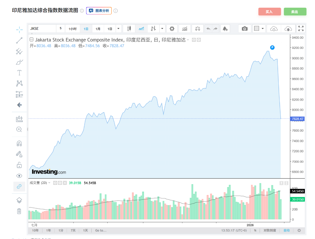 格隆汇1月29日|MSCI此前对印尼市场可投资性发出警告,引发股指创出近30年来的最大两日跌幅,印 尼基准雅加达综合指数今日一度跌10%,此前触发暂停交易30分钟。如果跌势持续,基准股指可能进入 技术熊市。高盛、瑞银均因印尼市场不确定性下调评级,高盛表示,极端情境下可能会引发超过130亿 美元的资金外流。 ...