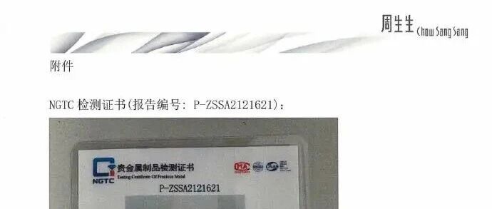 周生生公布检测报告:该批次货品质量完全符合国家相关标准