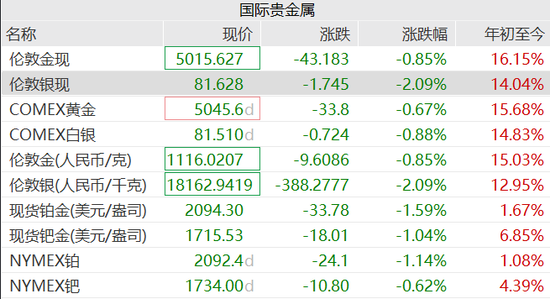 黄金开盘跌破5000美元,白银跌超2%