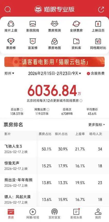 “电影+”消费火热!郑州春节档票房冲进全国前十