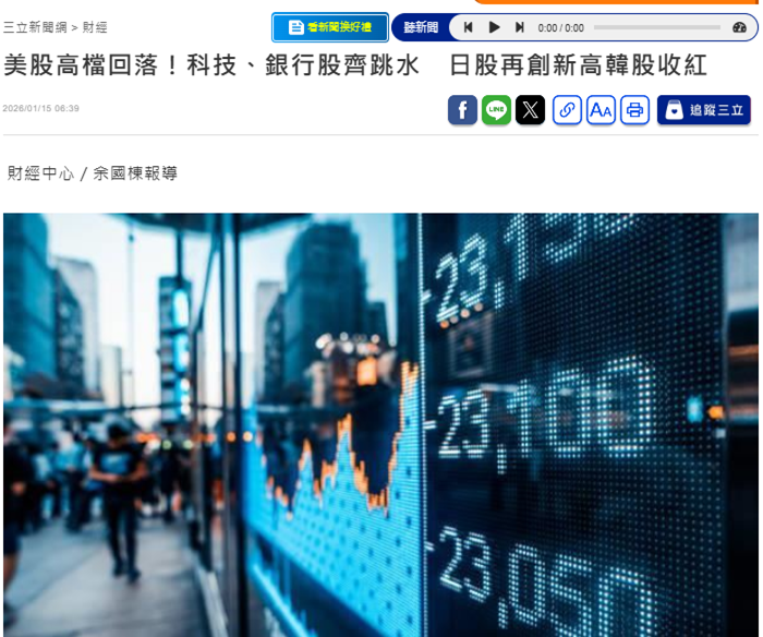【环球网财经综合报道】北京时间1月15日凌晨,美国三大股指全线收跌,道指跌0.09%报49149.63点, 标普500指数跌0.53%报6926.6点,纳指跌1%报23471.75点。亚马逊、微软跌超2%,领跌道指。万得美 国科技七巨头指数跌1.32%,脸书跌超2%,特斯拉跌近2%。 美股录得连续第二个交易日下滑,有分析人士称,华尔街交易员正在消化最新一批银行企业财报。 三立新闻网发文称,美国银行与富国银行在公布最新一季财报后,股价分别下挫3.78%与4.55%,市场 认为交易动能虽有改善,但利率政策不确定性仍压抑评价。同时,市场普遍预期联准会短期内将按兵不 动,使高估值科技股承压。 报道还提到,整体而言,科技与金融双双走弱,使第四季财报季的低迷开局持续扩大。美股在高位回档 整理阶段,资金转向观望;投资人后续将持续关注美国通膨走势、联准会利率信号,以及企业财报对市 场情绪的进一步影响。 ...
