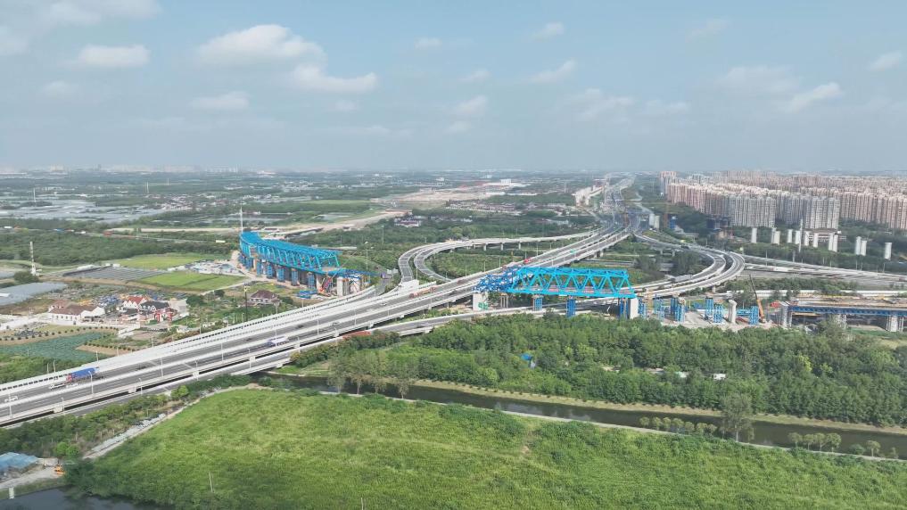 沪渝蓉高铁上海段108米钢桁梁架设完成