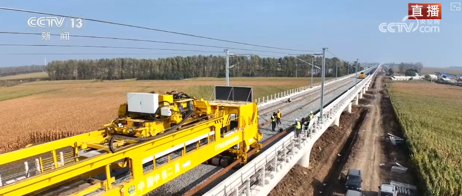 央视网消息:这个国庆中秋假期,不少人选择乘坐便捷的高铁探亲访友、游览山河享受休闲的假日时光。然而在各地工程项目建设 现场,建设者们坚守岗位,加速推进项目进度。哈伊高铁是我国"八纵八横"高铁网京哈至京港澳通道的延长线,也是在建纬度最 高、穿越多年冻土区的高速铁路。 这里是在哈尔滨市呼兰区,哈伊高铁哈尔滨至铁力段的铺轨现场,铺轨机正在有序地工作中。铺轨机前方,2条长达500米的钢轨已 经被牵引车拖拽出来。随着铺轨机向前行驶,在这个区域,通过机器臂的抓取,14根枕木就平稳地铺设在了道砟上,如此循环往 复,看上去就像钢琴键一样,非常的整齐。得益于这台大型的铺轨机,工作一天至少可以铺设2.5公里的钢轨。 铺轨机走过之后,接下来的工序就是倾泻道砟,就是道砟车将这种石头倾泻在道床上。由养路机械进行道床整形作业,把底砟的厚 度由20厘米抬高到35厘米。通过震颤,这些道砟就进到了枕木的下面,再通过电脑控制进行轨道修正,提高线路的平顺性。一段段 钢轨相继铺设完成,哈伊高铁的"骨架"就逐步显形了。 了解了具体的铺轨过程,再一同展望一下这条高铁的全线图景。哈伊高铁是分成了两段,从哈尔滨站出发,途经绥化南、庆安南再 到铁力站,这是哈铁 ...