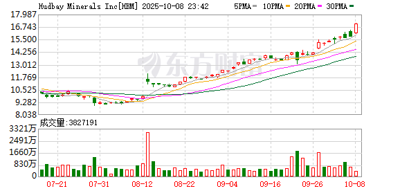 美股铜概念股集体走强,Hudbay Minerals涨超8%