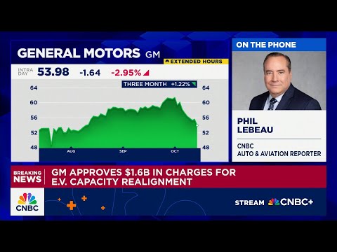 And we have some breaking news from GM. Our man Phil is going to try and fix it uh for us on the squawk news line for details. What do you got, Phil.Hey Joe, we have General Motors taking charges totaling $1.6% billion for the third quarter related to reduction in what they expect to be EV capacity as well as unwinding some EV product related uh contracts. So as a result, they going to take 1.2% 2 billion in one charge as an adjustment to EV capacity, another 400 million in contract cancellations. So, as yo ...