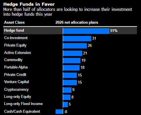 Group 1 - The hedge fund industry has recently achieved its best performance since 2009, yet some firms are choosing to close their doors to new investments [1][3] - ADAPT Investment Managers, a Swiss hedge fund, has stopped accepting new funds, with its capital pool expanding to approximately $2 billion and a projected return of about 16% for 2025 [1][3] - Greenvale Capital, led by former Castle stock-picking expert Bruce Emery, manages around $1.8 billion in assets and is expected to refuse new investments later this season, having achieved nearly 21% returns in 2025, driven by investments in residential solar and wind service providers [4] Group 2 - More than half of allocators are looking to increase their investments in hedge funds this year, with 51% planning to allocate funds to this asset class in 2026 [5] - Global macro funds are projected to have an average return of 27.7% in 2025, while equity strategy funds achieved an average return of 23.4% last year [5]
