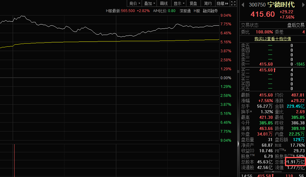 超过中国石油和贵州茅台 宁德时代总市值站上1.9万亿元