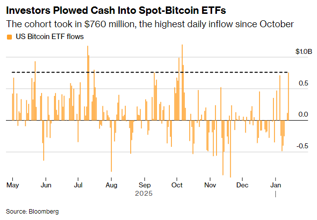 逃离下跌阴霾?比特币ETF单日吸金7.6亿美元 机构和散户又“杀回来了”