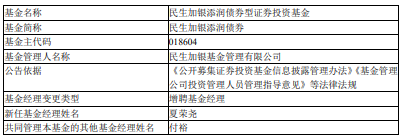 民生加银添润债券民生加银鹏程混合增聘夏荣尧