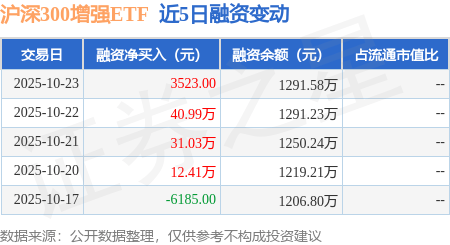 沪深300增强ETF:10月23日融资净买入3523元,连续3日累计净买入72.37万元