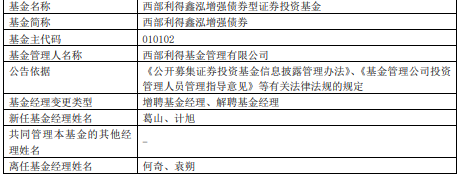 西部利得鑫泓增强债券增聘葛山与计旭