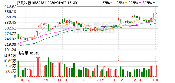 两融数据显示,该股最新融资余额为11.61亿元,近5日减少8773.98万元,降幅为7.03%。(数据宝) 1月7日拓荆科技大宗交易一览 | 成交量 | 成交金额 | 成交价格 | 相对当日收盘折 | 买方营业部 | 卖方营业部 | | --- | --- | --- | --- | --- | --- | | (万股) | (万元) | (元) | 溢价(%) | | | | 61.10 | 22952.83 | 375.66 | -1.40 | 中信证券股份有限公司总 | 华泰证券股份有限公 | | | | | | 部(非营业场所) | 司北京分公司 | (文章来源:证券时报网) 拓荆科技1月7日大宗交易平台出现一笔成交,成交量61.10万股,成交金额2.30亿元,大宗交易成交价为 375.66元,相对今日收盘价折价1.40%。该笔交易的买方营业部为中信证券股份有限公司总部(非营业场 所),卖方营业部为华泰证券股份有限公司北京分公司。 进一步统计,近3个月内该股累计发生13笔大宗交易,合计成交金额为12.89亿元。 证券时报·数据宝统计显示,拓荆科技今日收盘价为380.99元,上涨6.43%,日换手率为2 ...