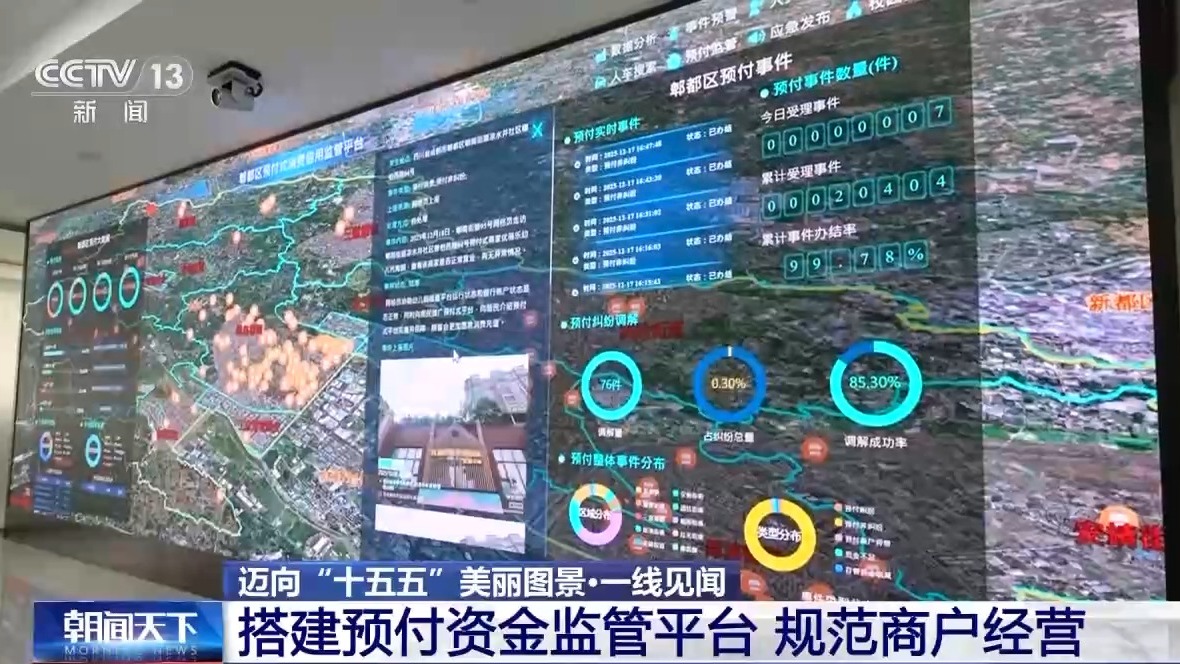 "十五五"规划建议提出,坚持和发展新时代"枫桥经验",加强乡村治理,完善社区治理,推进网上网下协同治理,深入推动矛盾纠纷源头化解、多元化解、 有序化解。社会治安综合治理中心由同级政法委统筹指导,通过整合综治、信访、司法等行政部门资源,推动群众矛盾纠纷化解"只进一扇门,最多跑一 地"。 数字赋能基层治理 推动矛盾纠纷源头化解 在成都市郫都区一家健身中心,市民刘先生正在通过扫码支付方式办理健身年卡,记者注意到这个支付码上方显著标明了"预付式消费信用监管平台可信消 费码"。 消费者扫码后预支付的消费资金并不像以前那样直接进入商家的个人账户,而是进入了一个由商家、银行和当地市场监管部门共同监管的专用账户。 由当地社会治安综合治理中心牵头搭建的这个信用监管平台,主要针对的是预付式消费风险较高的健身游泳、美容美发、教育培训、餐饮等重点行业,对消 费者存入商家的预付资金,平台会根据商家经营的风险等级,动态锁定20%至35%不等的预付资金,防范商家像过去那样一次性把资金全部"转移跑路"。 成都市郫都区委政法委副书记 张祥平:如果账户存100万元,不能一次性取完。一定要按照设定的标准,一次性只可以取65万元或者75万元,剩下的 ...
