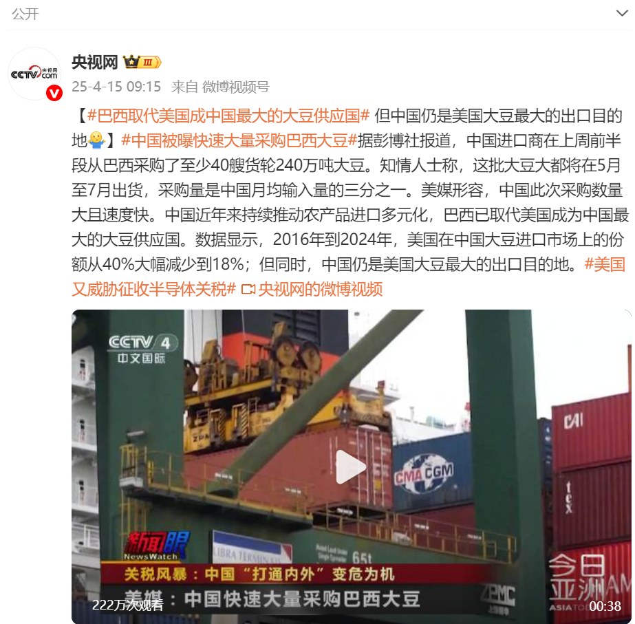 Yang Shi Xin Wen Ke Hu Duan· 2025-04-21 02:19