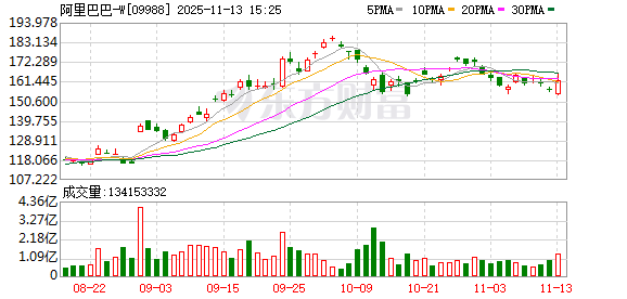 消息面上,据报道,阿里巴巴已启动"千问"项目,基于Qwen最强模型打造一款同名个人AI助手——千 问APP,全面对标ChatGPT,加入全球AI应用的顶级竞赛。阿里核心管理层将其视为"AI时代的未来之 战",希望借助Qwen的开源技术优势赢得竞争。 财通证券近日指出,阿里巴巴从电商起步,经过多元化发展,现涵盖云计算、国际零售、移动互联网等 多个领域。面对消费环境变化和市场竞争,公司战略重心从多元化扩张重回聚焦核心业务,持续增强竞 争力。展望未来,公司将加大对云和AI基础设施的投入(2025—2027财年累计投入超过3800亿元), 加速AI技术在电商、云计算等核心场景的深度应用与产业化落地,进一步巩固技术壁垒,并探索AI驱 动下的新增长曲线。公司作为国内电商及云计算龙头企业,以AI为核心驱动巩固竞争优势,打开长期 增长空间。 (文章来源:证券时报网) 阿里巴巴(09988.HK)午后快速拉升,盘中一度涨超5%。截至发稿,该股涨逾4%,成交约170亿港 元。 ...