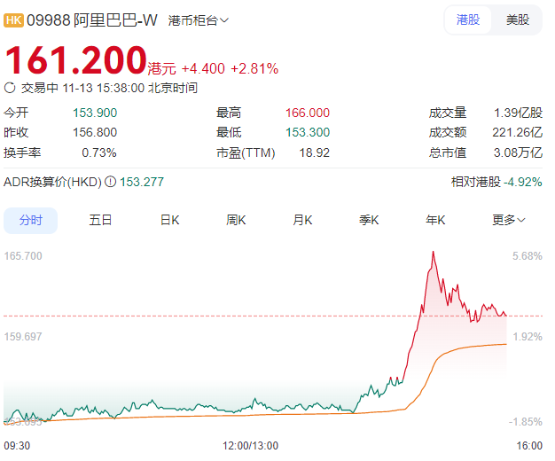 (原标题:沪指续创10年新高!锂电池板块集体爆发 消费股继续活跃) 阿里计划先对目前在iOS和Android上的"通义"应用进行更新,并将其更名为"千问"(Qwen),沿用公司知名的大模型品牌。随后,阿里将在未来 数月内逐步加入智能体式AI功能,为包括主站淘宝在内的平台提供购物辅助。 【导读】A股大涨,阿里巴巴直线拉升 今天市场表现不错,沪指续创10年新高,尾盘阿里巴巴股价直线拉升,带动港股持续上扬! 一起看看发生了什么事情。 阿里巴巴大消息 11月13日午后,阿里巴巴股价直线拉升,一度涨约5%,随后涨幅略有收窄。 消息面上,有报道称,阿里巴巴正准备在未来几个月对其主要移动端AI应用进行全面改版,使其更像OpenAI的ChatGPT。这是阿里在更大范围内 追赶竞争对手,并最终从个人用户实现盈利的重要一步。 其中,2026年1月1日至2028年12月31日,公司采购电量累计不低于200GWh,宁德时代确保按公司需求量纲供应。海博思创承诺其生产经营所需 产品采购并使用宁德时代电芯产品(电芯类产品、系统类产品),宁德时代确保其产品满足海博思创的质量及技术要求,年度采购数量以双方另 行签订的《量纲/框架采购协议》约定 ...