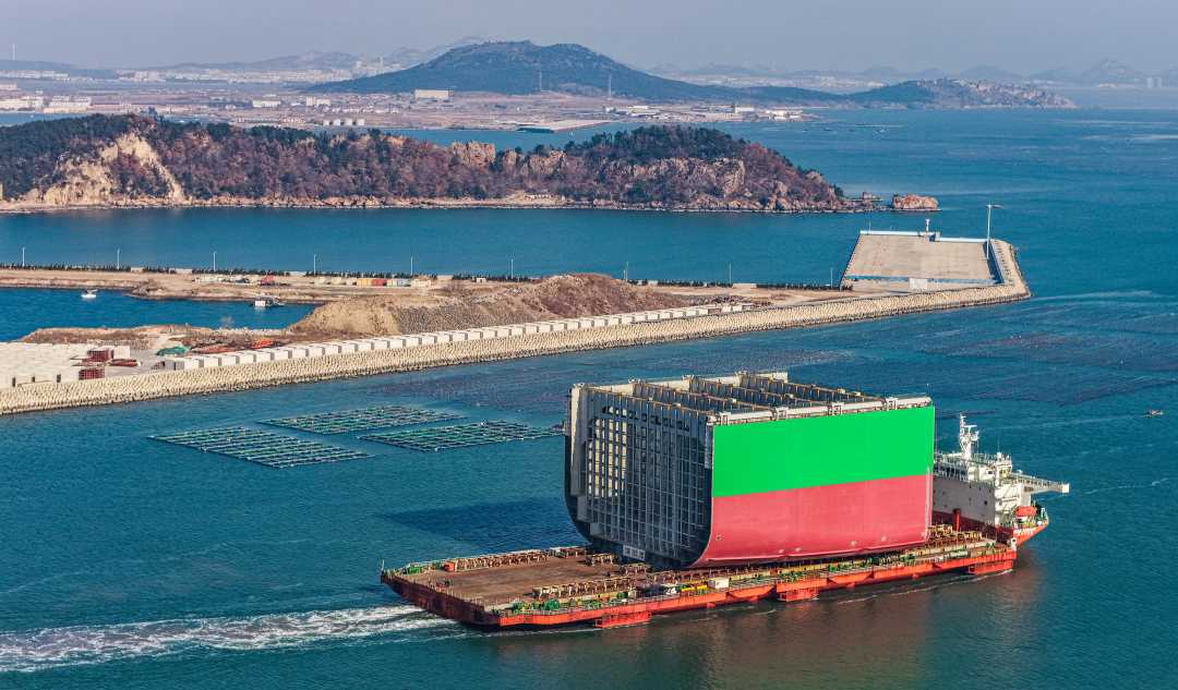 山东荣成:大型液化天然气运输船船段出口韩国