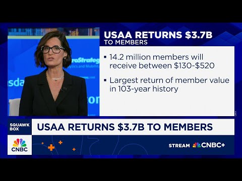 >> WELCOME BACK TO SQUAWK BOX. GOT SOME NEWS FROM THE INSURANCE INDUSTRY. CONTESSA BREWER JOINS US AT THE TABLE THIS MORNING WITH MORE.WHAT'S GOING ON. >> MORNING GUYS. WELL WE CAN EXCLUSIVELY REPORT THIS MORNING USAA IS SET TO RETURN $3.7% BILLION TO ITS POLICYHOLDERS, 14.2% MILLION OF THEM MOSTLY SERVICE MEMBERS, VETERANS AND THEIR FAMILIES.USAA IS AN ASSOCIATION, AND SO ITS CUSTOMERS ARE ALSO ITS SHAREHOLDERS. THIS IS THE LARGEST PAYBACK IN THE COMPANY'S 103 YEAR HISTORY, AND THAT'S IN SPITE OF THE CONSI ...