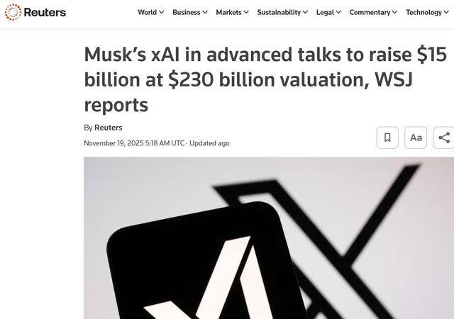 马斯克旗下xAI据悉进行深入谈判,拟以2300亿美元估值融资150亿美元!是3月合并时披露的1130亿美元的两倍多