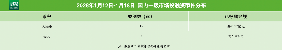 Group 1: Technology and Manufacturing Sector - The technology and manufacturing sectors have seen over 20 significant financing cases, highlighting the increasing prominence of hard technology [1] - The company Zivariable Robotics secured 1 billion RMB in A++ round financing, backed by major investors like ByteDance and Sequoia China [21] - Star Ring Fusion completed 1 billion RMB in A round financing, setting a record for private fusion companies in China [1][24] - Other notable financings include over 600 million RMB for Jindie Space in B round financing focused on RISC-V chips and nearly 100 million RMB for Zhongke Kuyuan in quantum computing [1][25] Group 2: Healthcare Sector - The healthcare sector remains active with significant financing and innovation in niche areas [1] - Shizai Bio raised 400 million RMB in C round financing to advance universal stem cell drug development [14] - Qinhao Pharmaceutical completed over 300 million RMB in financing to tackle difficult drug targets, while Oricell raised 70 million USD to accelerate CAR-T therapy internationalization [1][11] Group 3: Investment Trends - The week of January 12-18, 2026, saw 27 financing events in the domestic primary market, totaling approximately 5.221 billion RMB [2][3] - The majority of financing cases were concentrated in Shanghai, Beijing, and Guangdong, with 5, 4, and 8 cases respectively [6] - Active investment institutions included Yifeng Investment and Songhe Capital, each completing 2 financing cases primarily in technology and healthcare sectors [8] Group 4: Consumer Services - LINLEE, a hand-crafted lemon tea brand, completed several million RMB in A round financing to support market expansion and product innovation [10] - The brand focuses on high-quality ingredients and unique product combinations to enhance consumer experience [10] Group 5: Regional Financing Distribution - The financing activities were predominantly concentrated in major cities, with Guangdong leading in the number of cases [6][7]