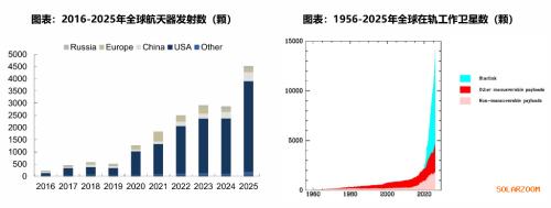 Core Viewpoint - Space photovoltaic technology is evolving from being merely "solar panels on satellites" to becoming a crucial component for the next generation of computing power (space computing/orbital data centers) [1][2] Group 1: Industry Trends - The application for orbital resources and satellite deployment plans is reshaping the supply-demand dynamics of the space industry, with a significant increase in satellite launches expected [2][3] - The number of global spacecraft launches has surged from 237 in 2016 to over 4,300 expected by 2025, reflecting a compound annual growth rate of approximately 34% [3] - The market for solar wings is transitioning from a niche to a mass production model due to the increasing number of satellites [5][6] Group 2: Cost Comparisons - A comparison of costs shows that deploying a data center in space can be significantly cheaper than on the ground, with a projected total cost of approximately $8.2 million in space versus $167 million on the ground over ten years [16] - The primary cost difference arises from energy expenses, where ground energy costs are estimated at $140 million over ten years, while space energy costs are nearly zero after initial deployment [16] Group 3: Technological Developments - The demand for solar wings is driven by the increasing power requirements of satellites, with examples showing significant growth in solar wing area from 22.68 m² to 256.94 m² for different satellite versions [9][12] - The report indicates a shift in technology from gallium arsenide (GaAs) to silicon-based technologies, particularly HJT (Heterojunction Technology), which offers advantages in weight, cost, and flexibility [25][27] Group 4: Market Potential - The solar wing market could reach approximately 200 billion yuan if annual satellite launches reach 10,000, with prices expected to decrease from 1,200 yuan/W to 622 yuan/W [10][11] - The space computing market is defined as deploying modular server nodes on low/mid-orbit satellites, transforming them into orbital data centers with significant computational capabilities [12][14] Group 5: Competitive Landscape - The competition for orbital resources is intensifying, with a total of over 100,000 low-orbit satellites planned globally, including approximately 45,000 from the U.S. and 53,000 from China [6][18] - The choice of technology and materials for solar wings will be influenced by launch costs, with SpaceX's lower costs allowing for different material choices compared to higher-cost Chinese rockets [22][23]